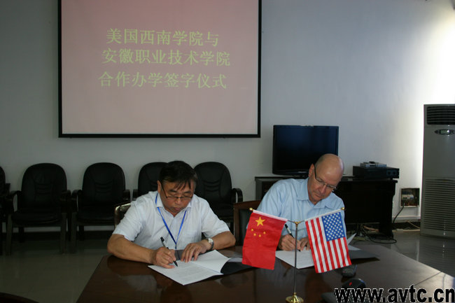 学院院长陈传海代表学院对梅里曼博士的来访表示热烈的欢迎,并介绍了学院的基本情况。梅里曼博士对陈传海院长的热情接待表示衷心感谢,他也介绍了美国西南学院的基本情况。双方就安徽职业技术学院与美国西南学院的合作进行了磋商,就课程衔接和学分认可等问题达成了基本共识,为今后两校的友好合作打下基础。会谈后,陈传海院长和梅里曼博士分别代表两校签署了“中国安徽职业技术学院与美国西南学院友好交流合作意向协议”。
