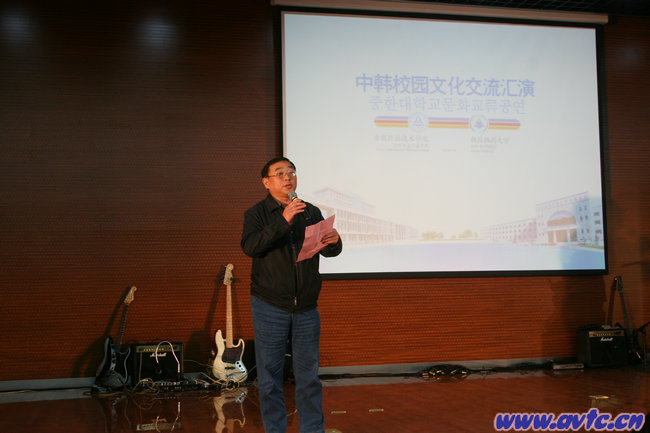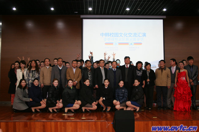 本网讯(院办通讯员 葛小竹) 2012年11月9日下午,作为学院“第八届学生团体文化艺术节”的重头戏——中韩校园文化交流汇演在我院学术报告厅举行。安徽职业技术学院党委书记方徽聪、院长陈传海、副院长李雪、韩瑞大学访问团团长金镇宇院长、副团长朴荣基教授(我院的客座教授)及两校有关系部和部门负责人与400多名中韩两国师生共同观看了汇演。