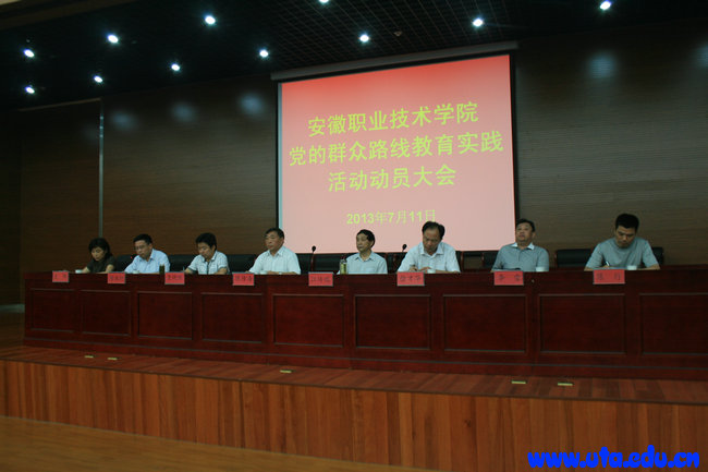 本网讯(宣传部 郝进平) 7月11日上午,学院在新图书馆三楼报告厅召开党的群众路线教育实践活动动员大会。省教育工委学习实践活动督导组组长、阜阳师范学院原党委副书记、纪委书记江传瑞出席大会并讲话。院党委副书记、院长陈传海作动员报告。省教育工委组干处主任科员査晓陆,院领导班子成员徐才华、李雪、史锋、陈行出席大会。学院党员190余人参加了大会,院党委副书记徐振轩主持会议。