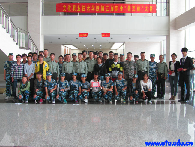 本网讯(院团委通讯员 徐李莉)9月25日中午,由院学生会生活部举办的安徽职业技术学院第五届“叠军被”大赛在图书馆一楼大厅举行。参加本次叠军被大赛的36名选手由各营队选拔推荐,各营营长担任大赛的评委。