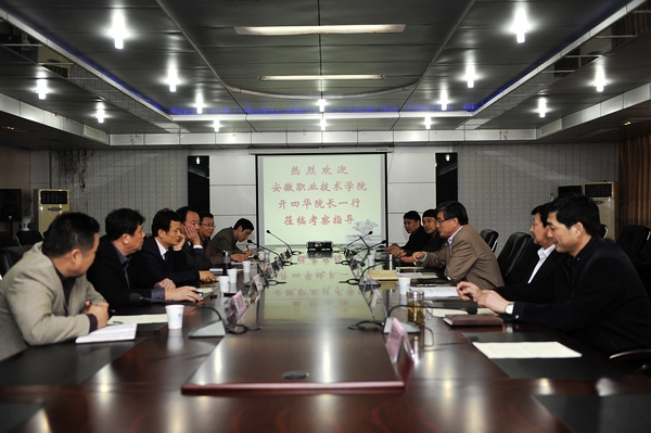 李兴旺代表安徽水利水电职业技术学院对亓四华一行的到来表示热烈欢迎,并详细介绍了该院发展的具体情况。亓四华对该院热情接待表示感谢,并简要介绍我院基本情况和此行目的。双方就学生学籍管理、科研管理、教职工周转房建设以及高职教育发展动态等进行深入交流、探讨。在交流过程中,双方均表达了要进一步加强合作,密切联系的共同心愿。