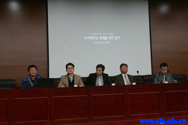会谈结束后,韩瑞大学代表团为我院200多名学生主办了赴韩瑞大学留学说明会。会上播放了介绍韩瑞大学的的影片和采访目前我院在韩瑞大学学习的学生的视频,并与学生们就他们感兴趣的问题进行了互动,受到了学生的欢迎。