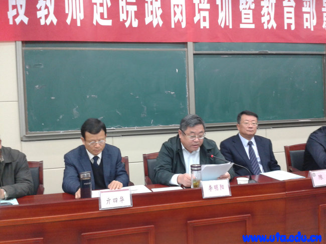 李明阳在会上做总结讲话。他要求承担培训任务各院校要高度重视培训工作,有针对性地制定培训方案,做到“教学到位、管理到位、服务到位”,同时也希望参加培训的教师要抓住机遇,不断提高自身的素质与能力。