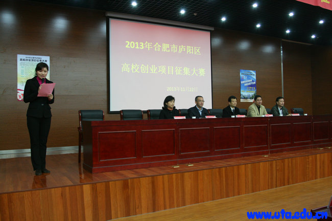 本网讯(创业服务中心通讯员 张祎) 11月22日,2013年合肥市庐阳区高校大学生创业项目征集大赛在学院图书馆三楼报告厅成功举办,学院院长亓四华出席开幕式并发表重要讲话。出席本次大赛的还有学院副院长史锋、合肥市人社局副局长王世保、庐阳区人社局局长王新成等。本次大赛的九位评委全部由合肥市创业专家志愿团的专家担任。