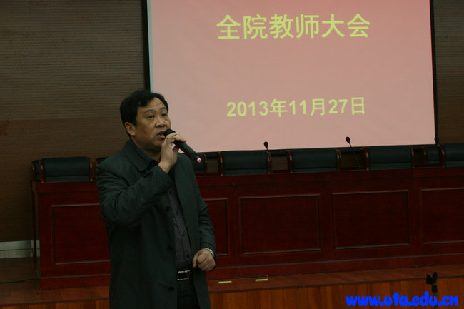 本网讯(教务处通讯员 王叶宏)11月27日,学院在学术报告厅召开全院教师大会,全院专兼职教师和人才派遣人员教师参加了会议。大会由副院长李雪主持,院党委副书记、院长亓四华出席会议并讲话。