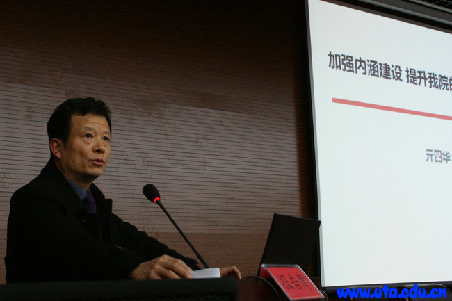 亓四华以《加强内涵建设---提升我院的核心竞争力》为题发表了重要讲话。他在讲话中介绍了内涵发展的特点,指出,目前经济社会发展对高职教育提出了很高的要求,走内涵式发展道路,已成为学院改革发展最紧迫的任务。紧接着,他从加强专业、课程、师资、文化和领导力建设等五个方面,介绍学院内涵发展重点工作。亓四华还介绍了高职院校专业设置的基本原则、专业建设的重要性、逻辑关系、内容和主要监测指标;介绍了几个校企合作、工学结合人才培养模式具体形式和人才培养模式改革与创新的实例;探讨了本科与高职教学模式的区别、高职课程体系的特点、科学构建课程与教学内容体系。他从如何做一名优秀的高职院校教师入手,分析了学院教师队伍发展现状,提出了顶层规划设计、过思想作风关、过能力关、增强教师队伍活力等师资队伍建设措施,并指出了文化建设和领导力建设在内涵建设中的重要作用。