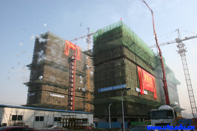 新学生宿舍楼于今年6月28日正式开始建设,在基建处的协调下,经过施工单位的努力,历时半年时间,1-3号楼均比原定计划工期提前实现封顶。