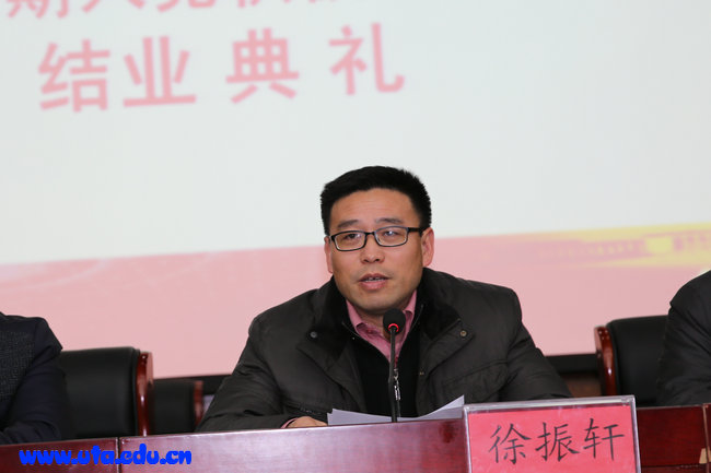 徐振轩作了总结讲话。他首先对本期培训班顺利结业和获得优秀表彰的广大学员表示祝贺,对为本期培训班付出辛勤劳动的各位老师表示感谢。他对本期培训班具体情况与办班特色进行了具体分析和总结。同时,他提醒广大学员,党校的学习取得的成绩固然可喜可贺,但是党校的结业并不意味着学习的结束,希望各位学员把党校的学习作为一个新起点,牢记使命,不断追求进步,追求真理,锤炼意志,提升品格,争取早日加入党组织。最后,他还给广大学员提了四点要求:一是坚定政治信念,树立远大理想;二是努力发奋学习,增强本领;三是更新观念,勇于创新;四是充当表率,争做模范。