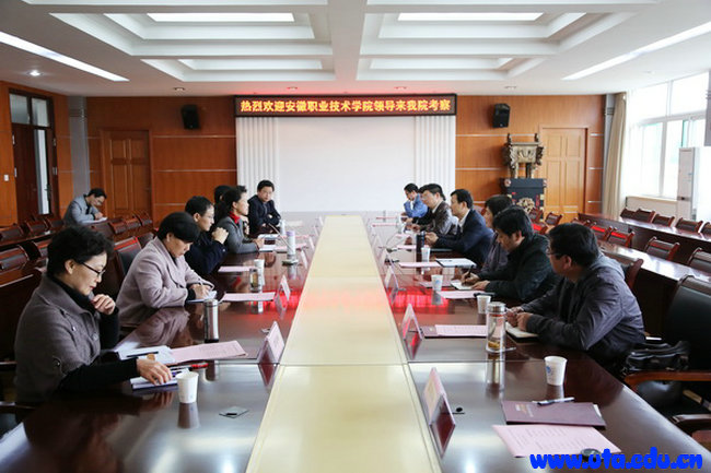 双方在十分友好的气氛中进行了座谈。梁文惠首先介绍了安徽工商职业学院基本情况。汪贤武及安徽工商职业学院会计系、工商管理系、旅游管理系三位系主任介绍了相关专业建设情况及近几年参加技能大赛的有关情况。亓四华对安徽工商职业学院的人才培养模式、师资结构、专业实训室建设情况、技能大赛承办情况等四个方面进行详细的了解、交流。座谈中,亓四华也分别介绍了我院的基本情况及人才培养情况的现状。双方还就专业建设、实训室建设、人才培养方案及安徽省技能大赛等方面进行了深度交流及研讨。
