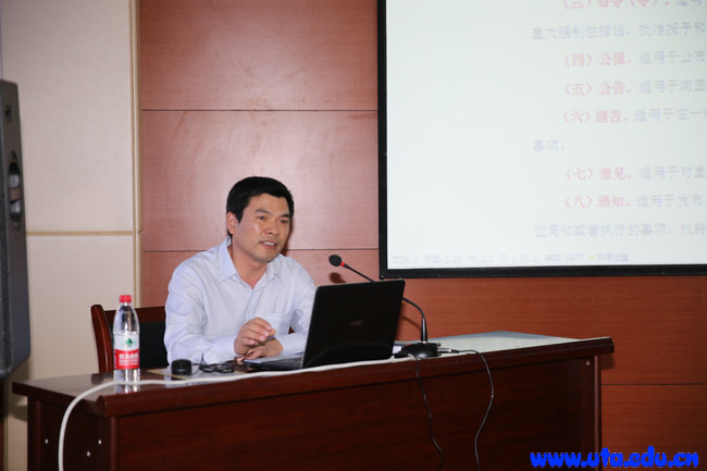 会上,学院副院长陈行为全院辅导员(班主任)作了题为“公文写作的认识与体会”的报告。报告分四个部分:一是为什么要写好公文;二是常用的公文有哪些;三是公文写作的基本规律;四是公文写作的几点体会。在报告中,陈行结合自己的工作经历,列举了大量公文写作的案例,旁征博引,语言生动。特别是消息、总结、领导讲话稿和汇报材料等常用公文写作要领的讲述,让与会人员受益匪浅。整个报告既有高度的理论概括,又有具体的实践指导,具有很强的说服力和感染力,深受与会人员的欢迎。