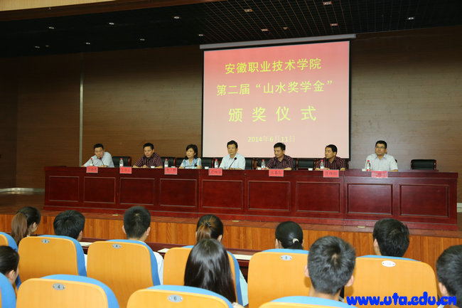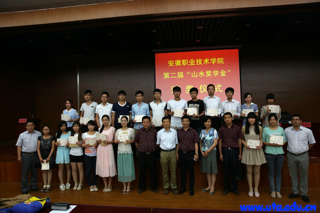 仪式上,史锋副院长首先宣读了《安徽职业技术学院关于表彰2014年度山水奖学金获得者的决定》,出席会议的领导和嘉宾为20名获奖学生颁发了奖金和证书。环保1222班的郭武南同学代表获奖同学发言。他在发言中向全院同学呼吁:要努力把握现在,不畏艰辛与曲折,充分利用好学院与企业这个平台,争取学到更多的专业知识。
