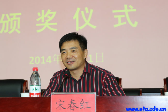 随后,宋春红先生发表了致辞。他在讲话中与大家分享了他在母校生活、学习的经历。他希望同学们能秉承“团结、奋发、严谨、求实”的校训,在求学道路上脚踏实地,更加珍惜在校学习的宝贵时光。