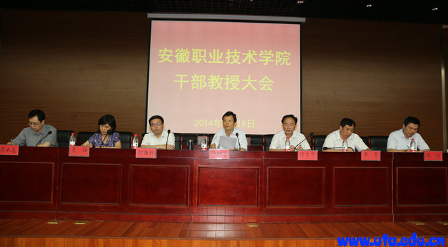 本网讯(宣传部 汪煦) 2014年6月19日下午,学院在图书馆三楼学术报告厅召开干部教师大会,学院副高以上职称、副科以上人员参加会议,院领导亓四华、徐才华、徐振轩、李雪、史锋、陈行、蒋永忠出席会议。会议由副院长徐才华主持。