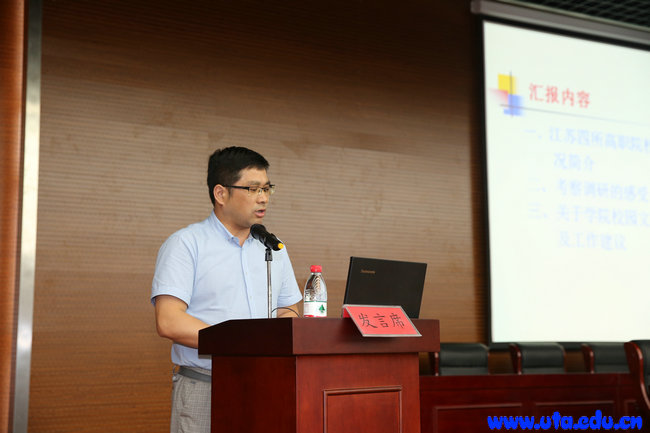 会上,组织人事处处长黄琪、党委宣传部部长胡辉平、图书馆馆长汪邦海、化工系主任方向红代表赴江苏考察团,教务处处长杨林国、纺织系主任袁传刚代表赴广东考察团分别汇报了赴江苏、广东有关高职院校考察的情况。他们的汇报涉及干部队伍建设和人事制度改革、二级管理模式改革、校园文化建设、教学改革与课程建设、图书馆信息化建设、试办本科教育等方面。他们结合考察中的所见、所闻、所感,紧扣自身及本部门的工作实际,借鉴发达地区兄弟院校的成功经验,畅谈了自己对部门工作的设想。