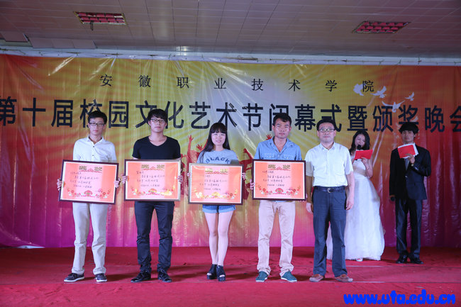 本网讯(院团委通讯员 张在腾、郭臣)6月18日晚18:30,学院第十届校园文化艺术节闭幕式暨颁奖晚会在学院东区礼堂举行。学院党委副书记徐振轩,各系党总支书记,院团委及各系辅导员老师,院系各团学组织学生代表参加了闭幕式。