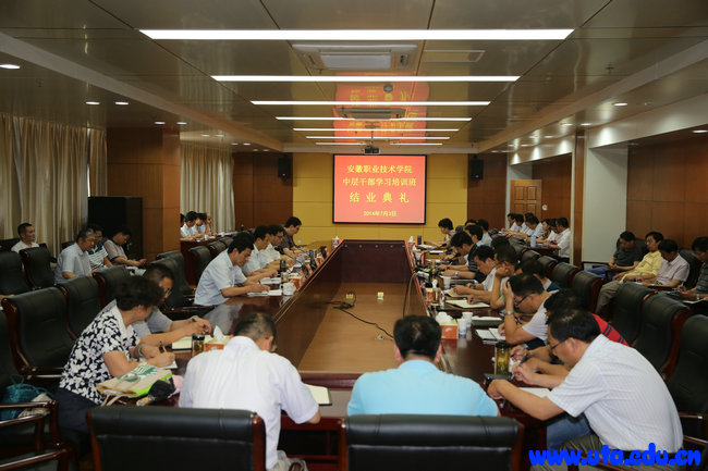 本网讯(宣传部 汪煦)根据学院《关于举办中层干部学习培训班的通知》安排, 7月3日下午,学院中层干部学习培训班在办公楼十楼会议室举行结业典礼,学院领导亓四华、徐振轩、李雪、史锋、陈行、蒋永忠和全体正科以上干部参加典礼。典礼由学院党委副书记徐振轩主持。