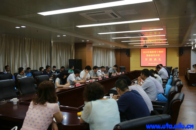 本网讯(教务处通讯员 花冬梅)7月16日上午,在学院十楼会议室举行了2014年高职骨干教师国家级培训班三个培训项目的开班典礼。副院长李雪、教务处处长杨林国、经贸系主任吕时礼、党总支书记刘玉杰、电气系副主任洪应、化工系副主任宣风琴、蒋成义及有关人员和来自全国各地40多名学员参加了开班典礼。典礼由杨林国主持。