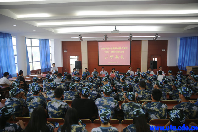 本网讯(本科部通讯员 张晓露)9月12日上午,学院在教学A楼报告厅举行首届“四年一贯制”本科新生开学典礼。合肥学院副院长陈秀、学生处长董承军、机械系主任许泽银,我院院长亓四华、副院长徐才华、党委副书记徐振轩、副院长李雪、副院长史锋、纪委书记蒋永忠以及相关部门负责人、全体新生出席开学典礼。典礼由李雪主持。