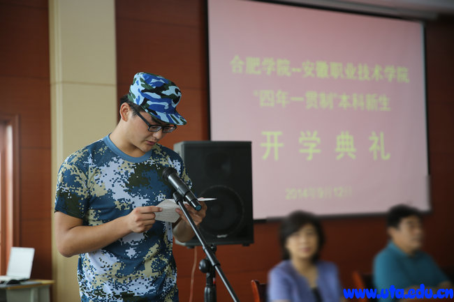 陈秀在此次开学典礼讲话中提到,作为合肥学院—安徽职业技术学院首批联合办学的本科班学生,希望同学们,一要勤学善思。高中学习与大学学习是截然不同的,高中学习讲究的是“学会”,而大学学习讲究的是“会学”。她希望同学们在崭新的求学阶段善于思考、积极摸索,通过不断地学习来充实自己的四年大学生活。二要健康生活,希望本科班新生要尽快适应大学生活,在群体生活中要宽容、多交流,更要团结合作,另外,在外求学要与父母勤联系,学会爱生活、爱他人、爱亲人。最后陈秀祝所有本科班新生能快乐地学习、快乐地生活、快乐地成长。