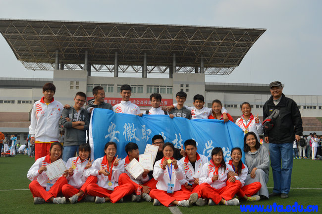 本网讯(公共教学部通讯员 许兴旺)10月8日至13日,安徽省第十三届运动会高校部田径比赛在安庆师范学院举行,我院田径代表队20名运动健儿在教练员丁奎、宋仁琴、吴卫平等老师的悉心指导下,不畏强手、奋勇拼搏,以10枚金牌的优异成绩名列乙组金牌榜第一名,并取得女子乙组团体总分第一名、男子乙组团体总分第二名和乙组团体总分第二名的优异成绩,这是我院参加全省田径比赛以来取得的最好成绩。