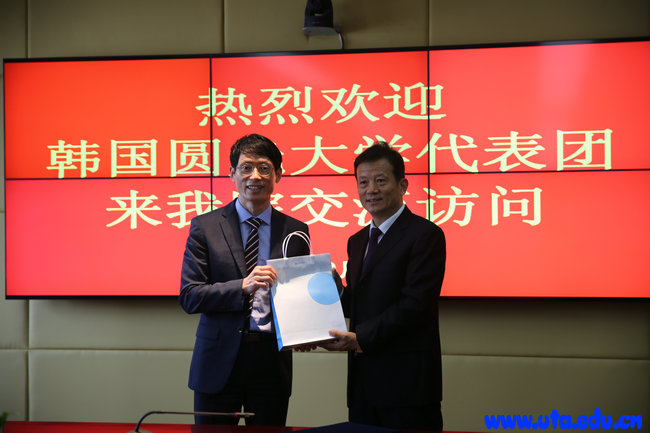 本网讯(办公室 葛小竹)10月28日,韩国圆光大学国际交流处处长姜石根一行访问我院。亓四华院长代表学院与圆光大学签署了《友好合作协议书》。我院外事办、教务处、学生处和经贸系的负责人参加了会见。