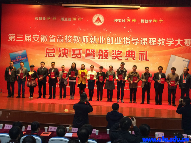 本网讯(学生处通讯员 胡坤)日前,从安徽省教育厅传来喜讯,在第三届安徽省高校教师就业创业指导课程教学大赛中,我院王家祥老师荣获创业组二等奖,白花蕊老师荣获就业组三等奖,我院荣获本次大赛的“最佳组织奖”。