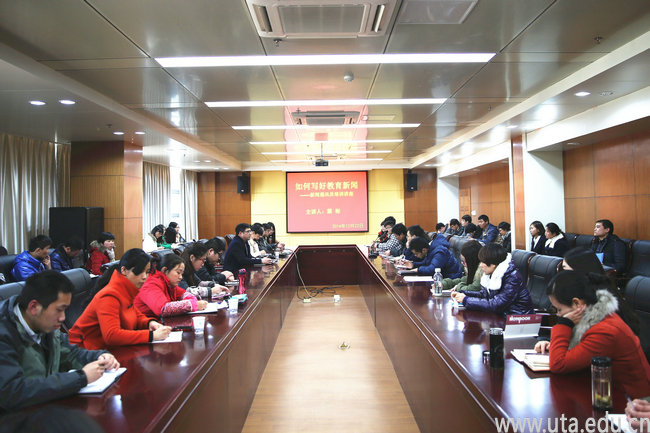 本网讯(党委宣传部 李彦) 为加强学院新闻队伍建设,提高通讯员的整体写作水平,营造学院发展的良好舆论环境,12月22日下午,在办公楼十楼会议室,学院举办了新闻通讯员专题培训讲座。讲座由安徽日报文化新闻中心记者陈婉婉、安徽教育网记者蔡彬担任主讲,学院党委宣传部全体成员,院各部门新闻通讯员,学生记者团记者以及对新闻写作感兴趣的师生参加培训。讲座由学院党委宣传部部长胡辉平主持。院党委副书记徐振轩在讲座结束后会见了两位媒体记者。