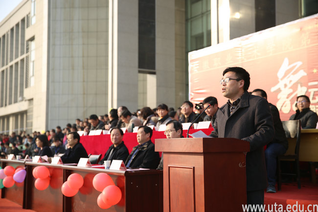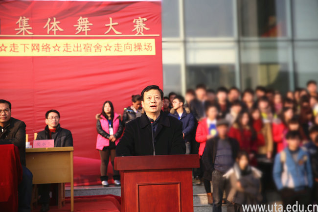 徐振轩在致辞中指出,为全面落实十八届三中全会“强化体育课和课外锻炼,促进青少年身心健康、体魄强健”的号召,积极响应团中央、教育部、国家体育总局、全国学联“走下网络、走出宿舍、走向操场”的倡导,促进大学生铸就强健体魄、塑造健康心灵,学院组织开展第一届集体舞大赛。他希望全体参赛队员舞出文明,舞出和谐,舞出美丽;赛出水平、赛出风采、赛出友谊;希望全院同学通过“三走”活动,推广快乐健身的新理念,营造崇尚健康的新风尚,展示安职院人昂扬向上的精神风貌,为实现“中国梦”、“安职梦”,增添青春正能量。