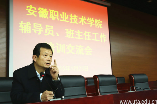 本网讯(学生处通讯员 萧潇)1月23日,学院举办2014-2015学年第一学期第二次辅导员、班主任工作培训交流会。院长亓四华、副院长史锋出席会议,各系部党总支负责人,学生处全体人员及全体辅导员、班主任共计150余人参加培训会议。会议由学生处处长陈纲主持。