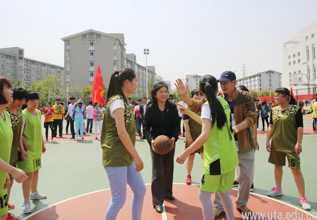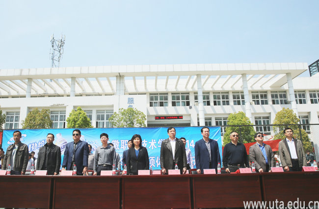 最后,李雪宣布“安徽职业技术学院2014—2015学年第二学期系列体育比赛” 开幕,史锋为第一场球赛开球。