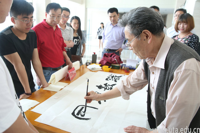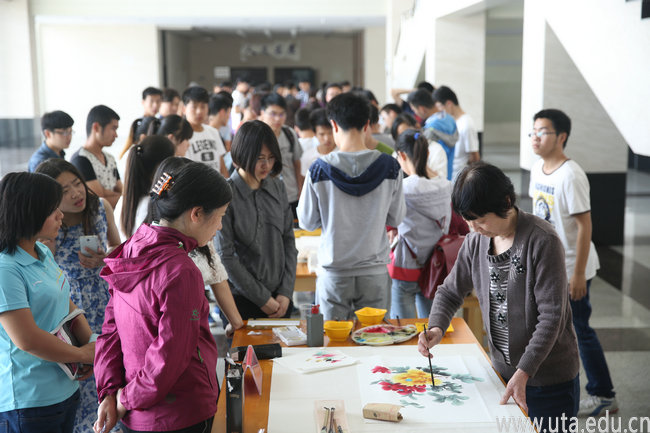 本网讯(图书馆通讯员 康媛媛)2015年5月13号下午,我院第三届文化读书系列活动之“书画家进校园”活动在学院图书馆一楼大厅举行。本次活动邀请荣华堂、陈华祥、尹萍、吴健、张仁斌、夏长秀等书画家走进校园,为广大师生传授书画技法并分享书画创作心得。学院书画协会的会员以及感兴趣的老师、同学参加了本次活动。