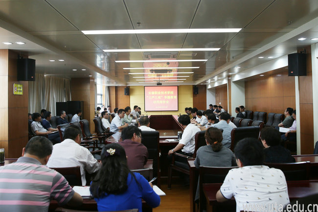 本网讯(党委宣传部 汪煦) 5月21日下午,学院党委副书记、院长亓四华在办公楼十楼会议室为学院党委委员,全体副科以上干部以及没有教学任务的思政课老师做了一场题为《践行“三严三实”,提高干部素质,深化作风建设》的党课报告会,由此拉开了安徽职业技术学院“三严三实”专题教育的序幕。报告会由学院党委委员、副院长徐才华主持。