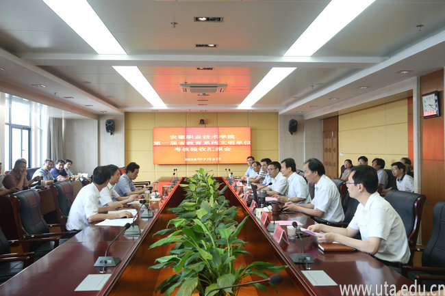 本网讯(党委宣传部 李彦)7月2日下午,由安徽科技学院党委书记蒋德勤为组长,安徽师范大学党委常委、办公室主任李忠,巢湖学院原党委宣传部长汪元榜为组员的安徽省教育系统首届文明单位考核验收组莅临我院,对我院申报教育系统首届文明单位的创建情况进行全面考核。