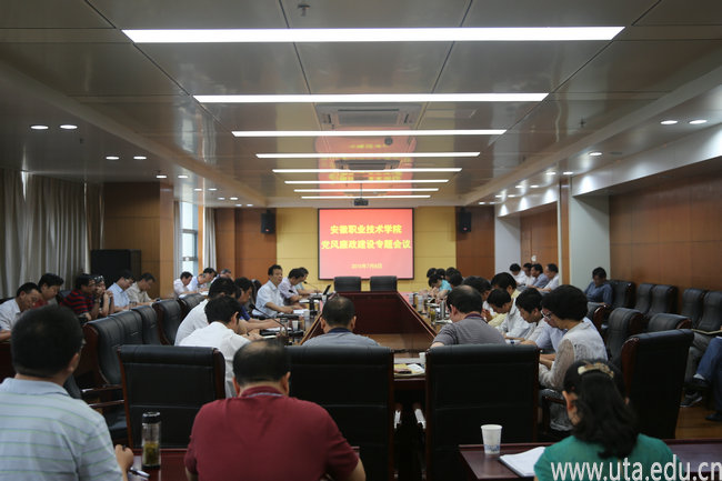 本网讯(院办通讯员 孙涤平)7月8日,学院召开2015年党风廉政建设工作专题会议。院领导亓四华、徐才华、徐振轩、李雪、史锋、陈行、蒋永忠及全体中层以上干部参加会议,会议由院纪委书记蒋永忠主持。