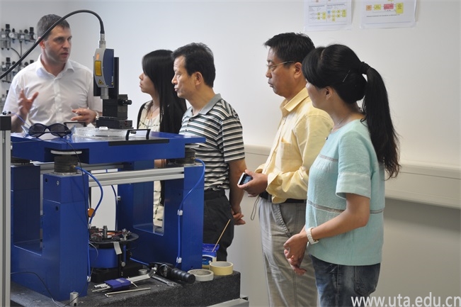 在交流访问结束之前,我院考察团一行还实地参观考察了德累斯顿国立职业学院合作办学企业斯佩克特声学振动控制技术有限公司。据悉,该企业在声学及振动测量仪器制造方面处于世界领先地位。该公司负责人弗兰克•舒尔茨向我院考察团一行详细介绍了该公司发展历程、产品制造等基本情况,并带领考察团一行参观考察该公司传感器测量实验室、环境测量实验室及生产制造实验室等。舒尔茨介绍说,具有申报职业学院资格的学生可通过该公司职位申请而获得在职业学院学习的机会,从而完成学院理论和企业实践相结合的“双元制”学习历程,最后通过考试后可直接留在该公司工作。