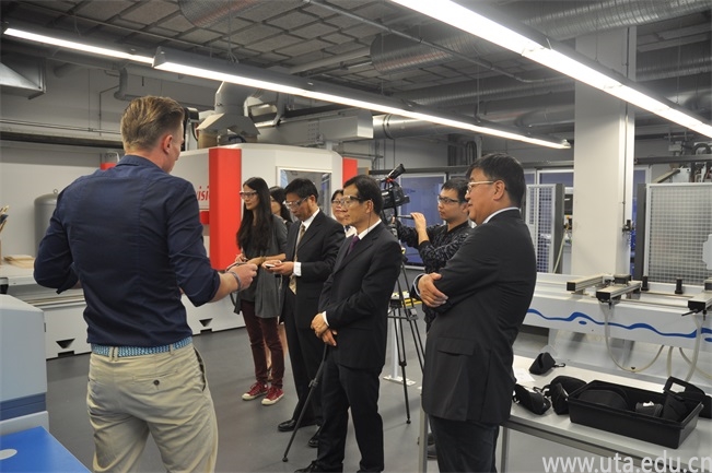 会谈结束后,亓四华一行在该校实训室主任哲伯瑞希特教授陪同下,实地参观考察了该学院的木材数控加工实训室、工业4.0模拟实训室、语言实训室、多媒体录播实训室等。通过对上述实训室的实地考察,学院考察团一行充分领略到具有德国职业教育特色的“学中做、做中学”的职业教育模式的优势。