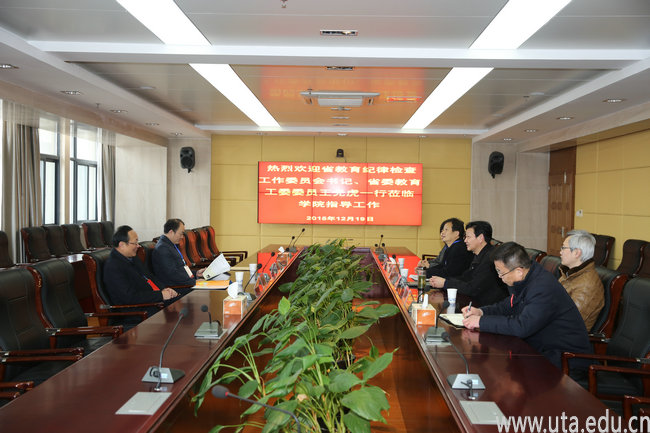 巡查结束后,王光虎与学院领导进行了座谈。亓四华向王光虎汇报了学院的基本情况以及学院英语等级考试工作安排及学院相关工作开展情况。王光虎对学院近年来在教育教学等方面取得的成绩给予了充分肯定,对学院在此次英语等级考试上的精心组织和周密安排表示满意。他希望学院“十三五”期间进一步加大改革力度,不断提高人才培养质量,努力为安徽的职业教育发展作出更大贡献。
