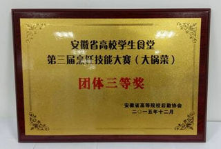 本网讯(后勤管理中心通讯员 范静)近日,从安徽省高校学生食堂第三届烹饪技能大赛组委会传来消息,我院代表队在本次大赛决赛中荣获“大锅菜”团体三等奖和大赛优秀组织奖。