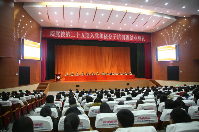典礼在庄严的国歌声中拉开帷幕。院团委副书记蒋成义首先通报了本期党校培训班的考核情况。随后,黄琪宣读了《关于表彰院党校第二十五期培训班优秀学员的决定》。建筑工程系材料1522班刘雨亭同学代表优秀学员上台作了发言。她畅谈了党校学习的感受,表示要以实际行动积极向党组织靠拢,为实现中华民族伟大复兴的中国梦而努力学习。