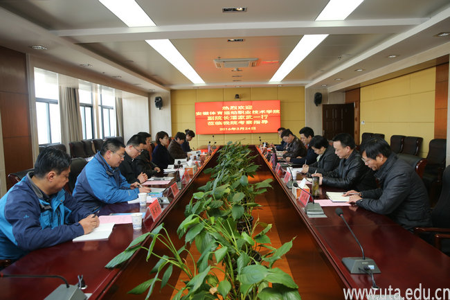 本网讯(院办通讯员 孙涤平)3月24日,安徽体育运动职业学院副院长潘家武一行七人来我院考察交流。院党委副书记、院长孙敬华,副院长陈行热情接待了客人。学院相关部门负责人参加了座谈交流。