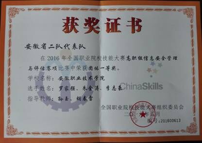 本网讯(信息系通讯员 陈丽菊)5月8日,2016年全国职业院校技能大赛首批比赛“信息安全管理与评估”项目赛场传来喜讯,代表安徽省队参赛的我院信息工程系代表队经过一整天激烈比赛,取得国赛“信息安全管理与评估”项目一等奖的优异成绩。这是自2008年全国职业院校技能大赛开赛以来,我省在该项目上第一次获得金牌,也是我省代表队在2016年全国职业院校技能大赛上获得的首枚金牌。