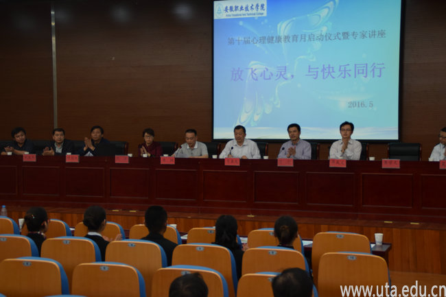 本网讯(学生处通讯员 杨珍) 5月11日,学院第十届心理健康教育月启动仪式暨专家讲座在院图书馆三楼报告厅举行。学院副院长陈行出席启动仪式。院各系党总支负责人,学生处、团委相关人员,院心理咨询室老师,各系辅导员班主任,心语协会成员,各班级心理委员和部分学生代表参加启动活动。仪式由学生处处长陈纲主持。