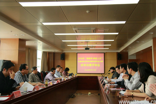 本网讯(院团委通讯员 石可)5月14日,2016年“挑战杯——彩虹人生”安徽省职业学院创新创效创业大赛决赛终审会在我院圆满落幕。团省委学院部副部长徐波,安徽省各高校有关评审专家和团省委学院部的工作人员参加了本次评审会。会议由团省委学院部张炎老师主持,学院副院长陈行到会致辞。