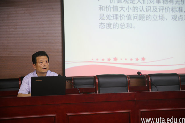 讲座中,亓四华分别就社会主义核心价值观提出的时代背景、概念内涵、价值意义以及在校大学生如何培育社会主义核心价值观四个方面进行了全面的分析与讲解。他从国家、社会、个人三个层面,对比分析了中国传统优秀文化与社会主义核心价值观,指出了它们之间传承与发展的关系。他分析了当前社会上存在的理想贬值、信仰缺失、道德滑坡以及社会浮躁、个人理性不足等现象,并结合当今国际形势、我国目前社会主义精神文明发展状况,深入分析和讲述了在新形势下培育和践行社会主义核心价值观的必要性和重要性。他还从社会主义核心价值观24字出发,阐述了核心价值观对大学生日常行为操守的重要指导意义。
