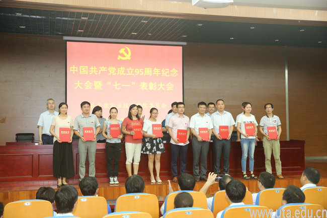 本网讯(组织人事处通讯员 丁琦)为庆祝中国共产党成立95周年,深入推进“两学一做”学习教育,7月1日下午,学院在三楼报告厅召开庆祝中国共产党成立95周年暨“七一”表彰大会,学院领导亓四华、孙敬华、史锋、陈行、蒋永忠,督导员李文钢和全体教职工党员、学生党员300余人参加了本次大会。会议由学院党委副书记、院长孙敬华主持。