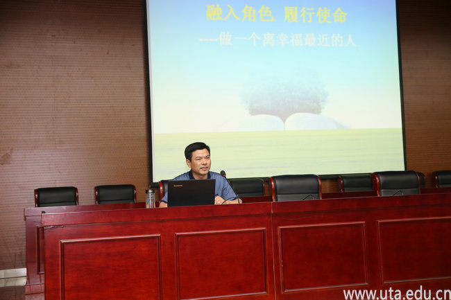 会上,陈行作了题为《融入角色,履行使命,做一个离幸福最近的人》的专题讲座。报告从讲述全国第八届高校辅导员年度人物的先进事迹入手,向大家展现了新时代辅导员积极向上、勤奋敬业、认真负责、求实创新的风采,进而提出辅导员是大学里离学生最近、了解最多、影响最大、情感最深的人。教育是天下最阳光的事业,其本质就是要塑造人、引导人、影响人,辅导员是教育岗位上离幸福最近的人。陈行从辅导员的角色定位、职业守则、素质能力、工作方法、职业发展等方面和大家进行了深入交流。陈行强调,辅导员、班主任应熟悉工作岗位,清晰角色定位,加强知识学习,提高业务能力和个人修养,以坚定的理想信念和高尚的人格魅力感染、教育学生,引领学生成长成才。最后,陈行带领大家郑重宣读了高校辅导员誓词,勉励全校辅导员、班主任坚定信念,满怀激情,充满爱心,在培养合格建设者和可靠接班人的事业中彰显人生价值。整场讲座娓娓道来、真诚感人、振奋人心、意味深长,在场人员深受启发。