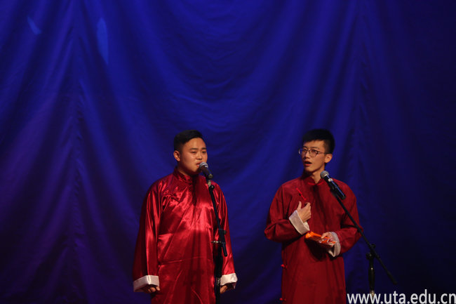 晚六点整,大学生活动中心霓虹闪烁、流光溢彩。本次晚会以“A New Dream”为主题,共分为“忆往昔,朝经暮史”、“值此时,意气风发”和“于未来,锐意进取”三个篇章。历时一个半小时的晚会,演员们用各具特色、丰富多彩的节目形式,为现场师生带来一场视听盛宴。歌舞表演让观众们在悠扬的歌声和动人的舞姿中感受音乐和舞蹈的魅力;朗诵《长征组歌》以催人奋进的纪实视频、饱含深情的表演将同学们带回当年那个充满硝烟战火的年代,感受革命先烈的英雄气概;舞台剧《霸王别姬》以华丽的灯光舞美、惟妙惟肖的演技,讲述了一段流传千古的凄美爱情故事;模特走秀《女神新装》既体现了学生积极向上、青春活力的精神风貌,又体现了我校的办学特色。精彩的节目将现场气氛一次次推向高潮,观众们不时爆发雷鸣般的掌声。最后,整场晚会在大合唱《跟着共产党走》、《感恩》中圆满落幕。