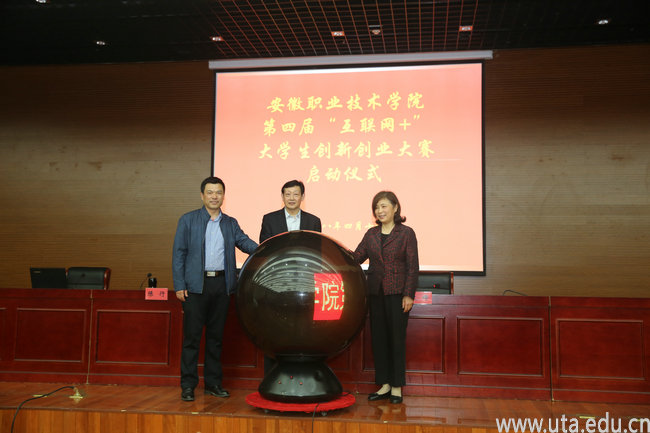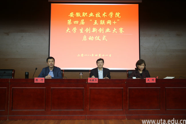 本网讯(创新创业学院通讯员 杜晓晗)4月11日下午,安徽职业技术学院第四届“互联网+”大学生创新创业大赛启动仪式在图书馆三楼报告厅隆重举行,党委副书记、院长孙敬华,副校长史锋、陈行出席了启动仪式。校学生处、团委负责人,各二级学院院长、书记,创新创业学院全体人员、创新创业教育全体教师、创业孵化基地业主、学生代表等400多人参加启动仪式。启动仪式由史锋主持。