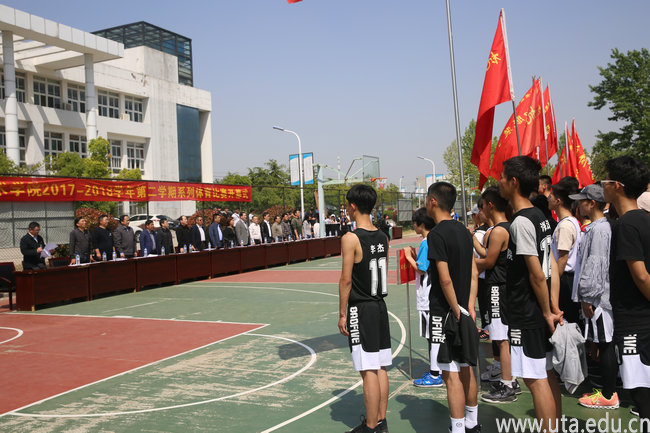 本网讯(基础教学部通讯员 王亮)4月18日下午,我校2017至2018学年第二学期系列体育比赛开幕式在校篮球场隆重举行。党委委员、副校长史锋、陈行,党委委员、基础教学部主任马纯出席了开幕式,各二级学院党总支书记、教务处、学生处、团委、保卫处等部门负责人参加了开幕式。