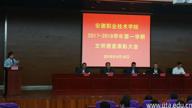 本网讯(后勤管理处通讯员 杨子红)4月18日,学院2017至2018学年第一学期文明寝室表彰大会在院图书馆学术报告厅召开。副校长陈行、后勤管理处、学生处、保卫处、院团委等部门负责人以及二级学院辅导员代表、校级文明寝室获奖代表参加大会,大会由后勤管理处处长陶新南主持。